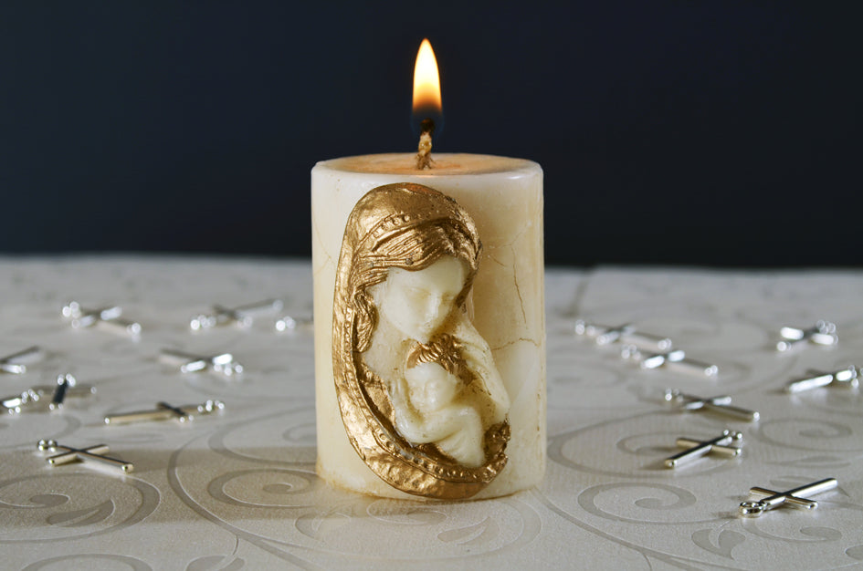 Vela cilindro con madona